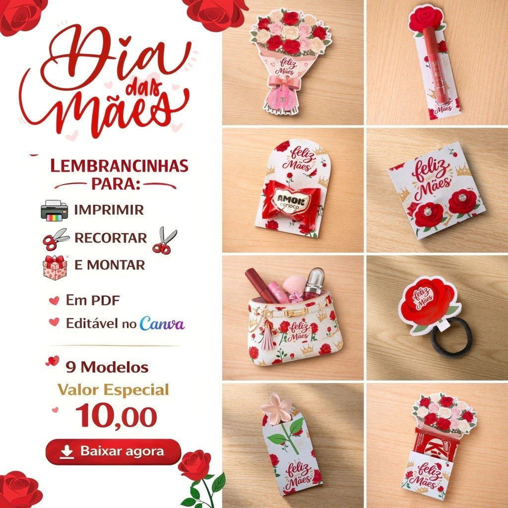 🌹Dia das Mães 2026 ✅ Caixa Cesta ✅ Caixa Envelope ✅ Buquê ✅ Cone Coração ✅ Maletinha ✅ Cartão Gigante Arquivo em PDF