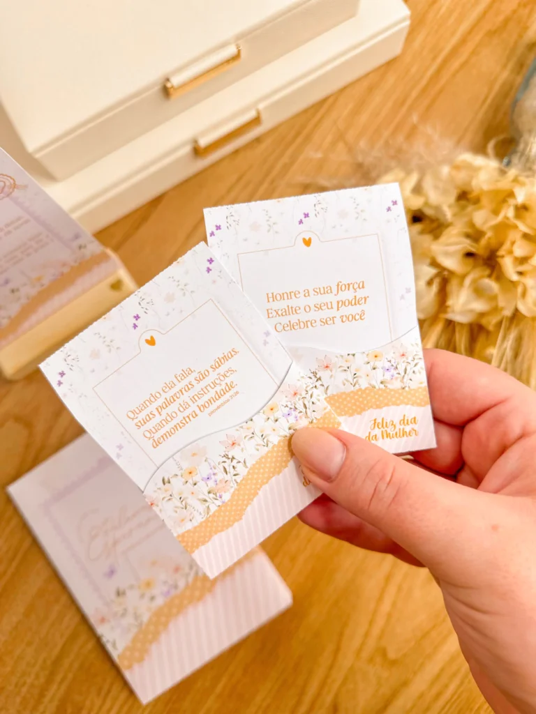 - Caixa com 50 cards com mensagens para Mulheres (mesmas mensagens dos livros de colorir) – cards 10×14,8cm