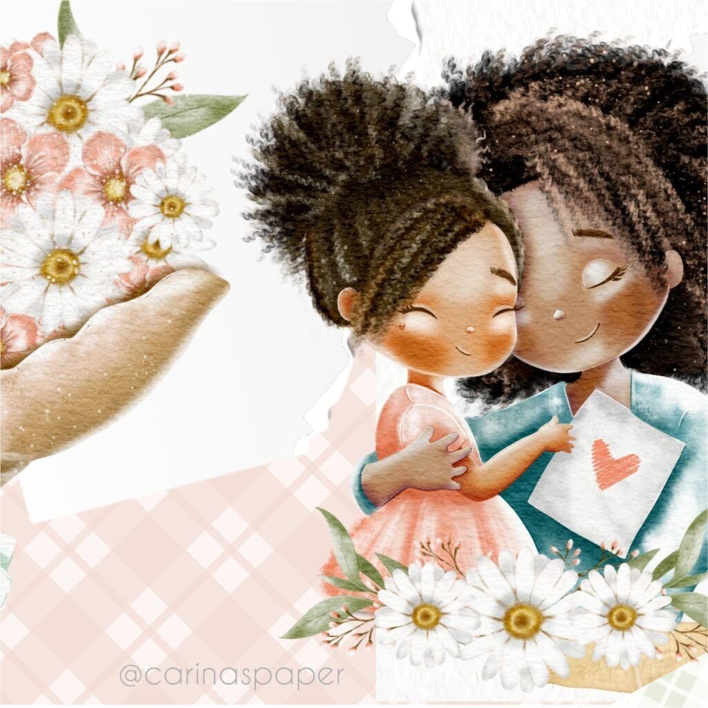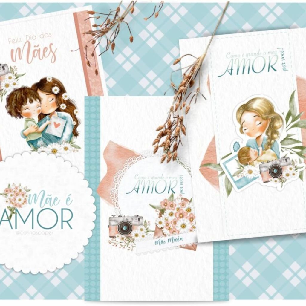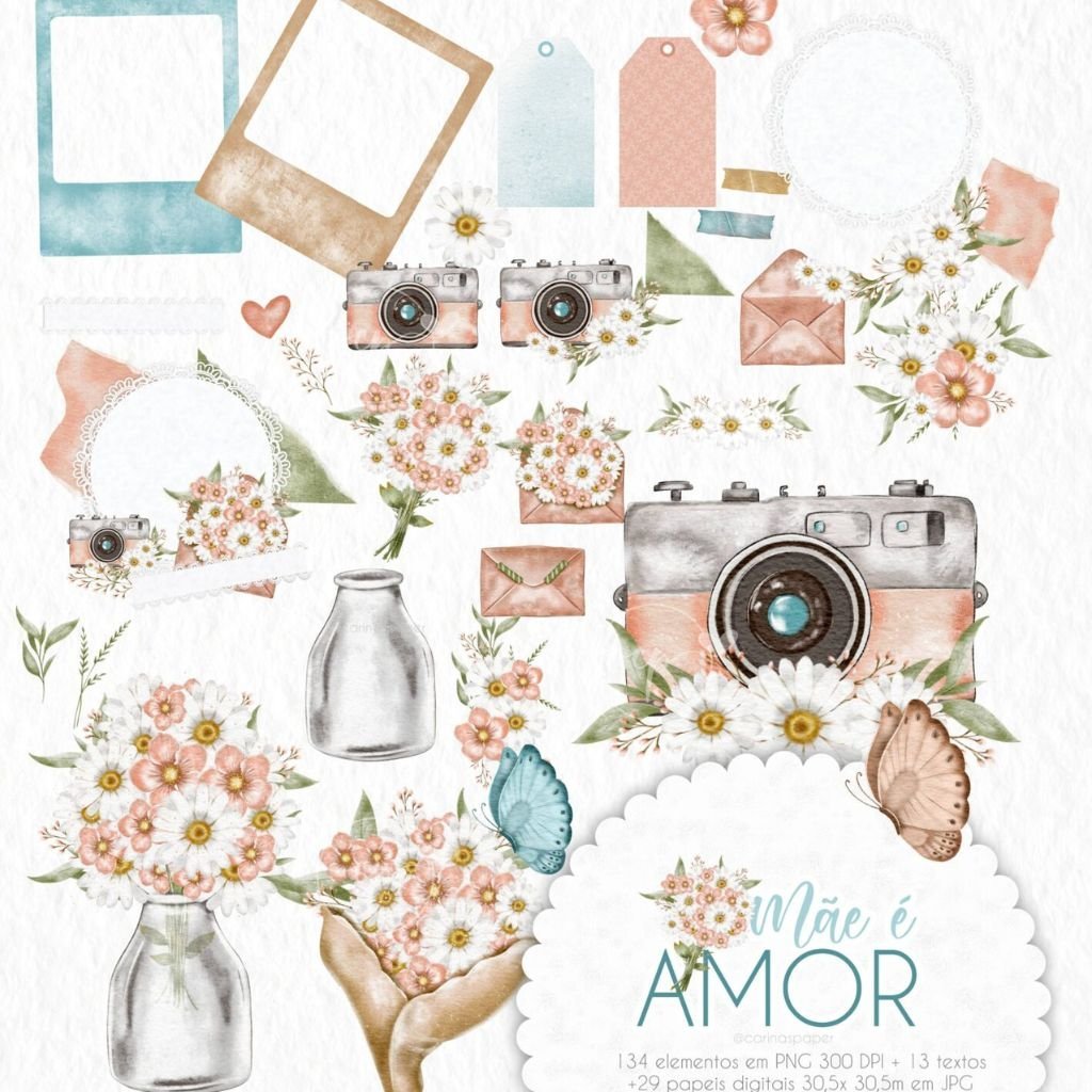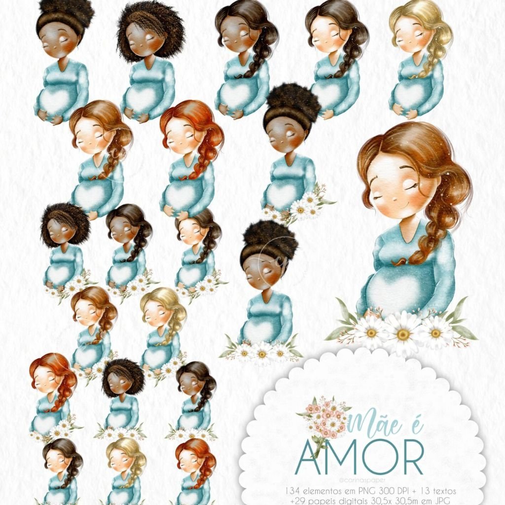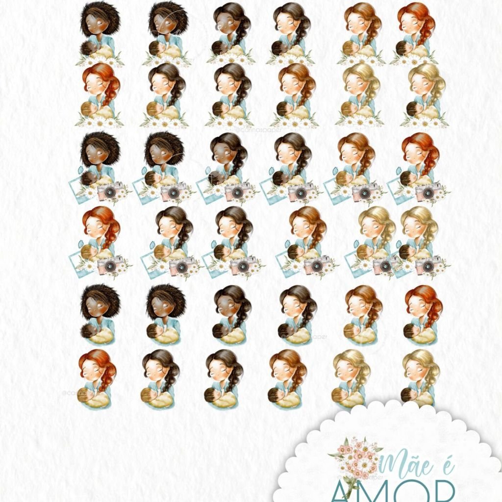 Um kit com ilustrações delicadíssimas para você compor produtos que enchem os olhos como: Cadernos, cartões, papel de carta, marcadores de página, capas de caderno e agenda, sacolinhas, buttons, postit, canecas, scrapbook e embalagens lindas para presentear as mamães nesse dia especial e além.