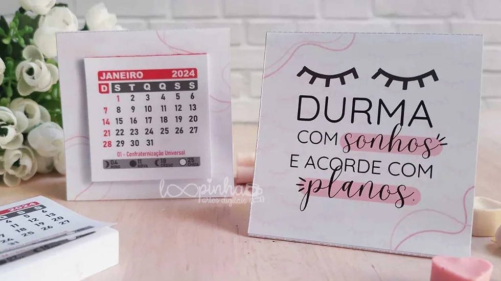 n- Calendário de mesa mini: 20cmx7cm (cabem 3/folha A4);