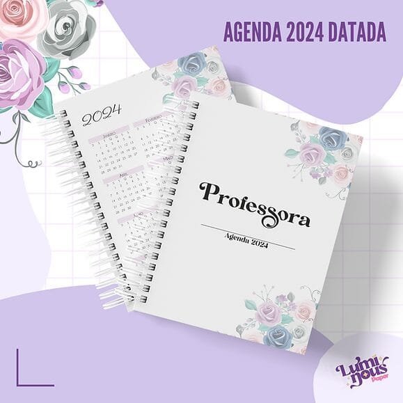 Agenda 2024 Floral Datada - Com Hora/Sem Hora O preço original era: R$ 20,00.O preço atual é: R$ 6,90.