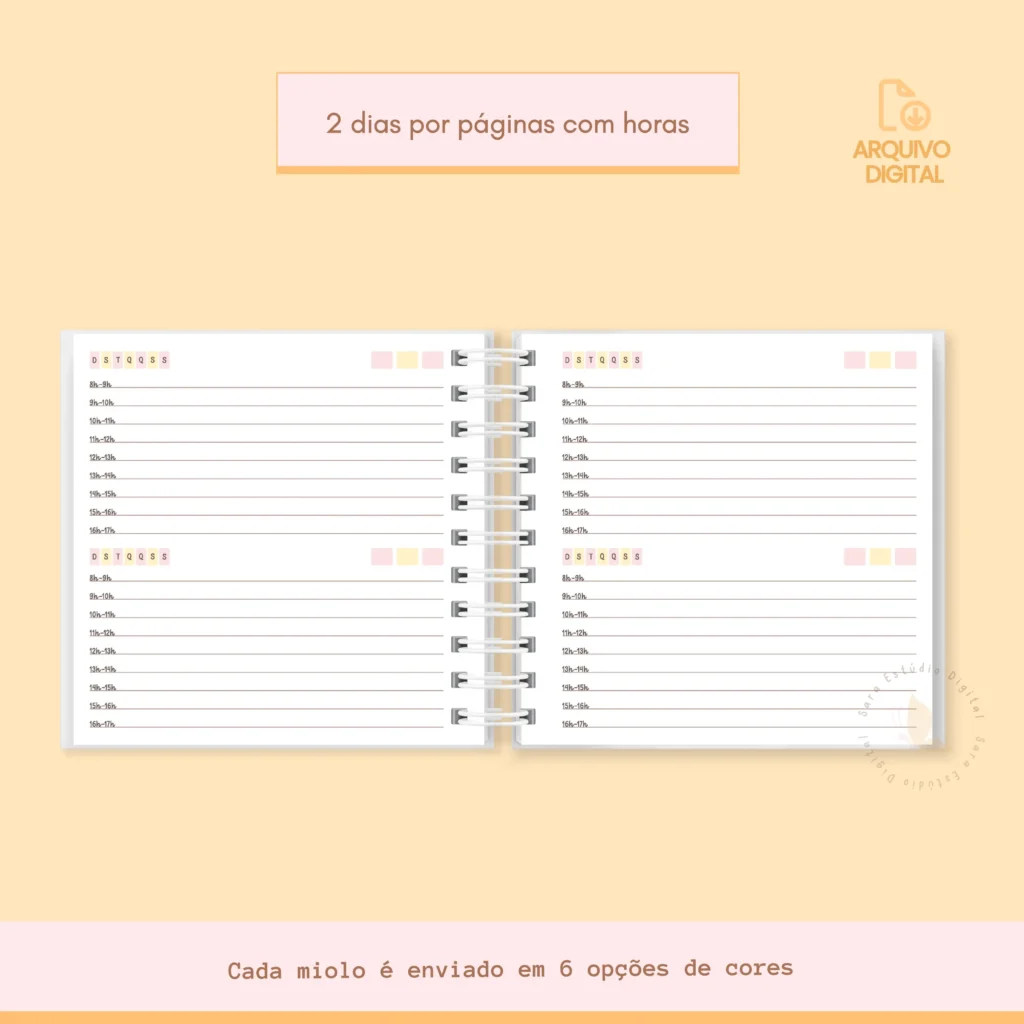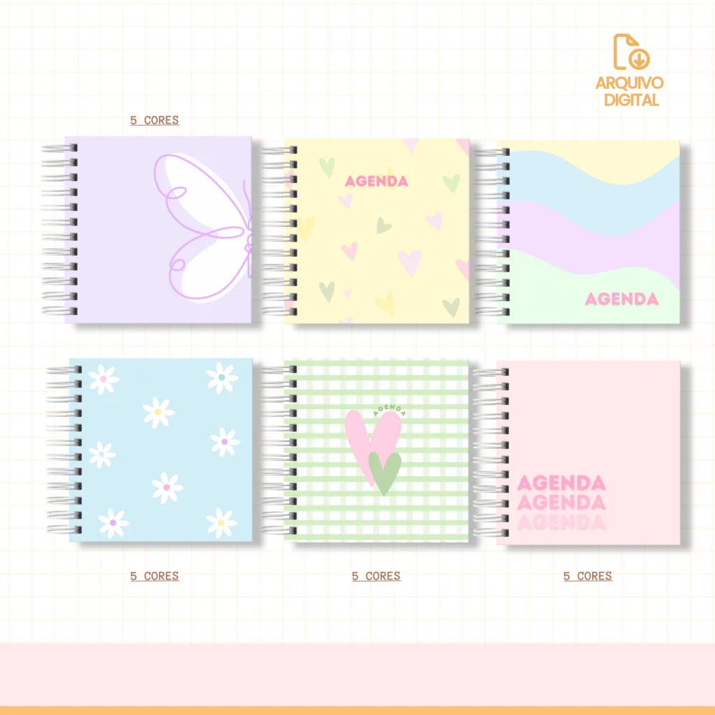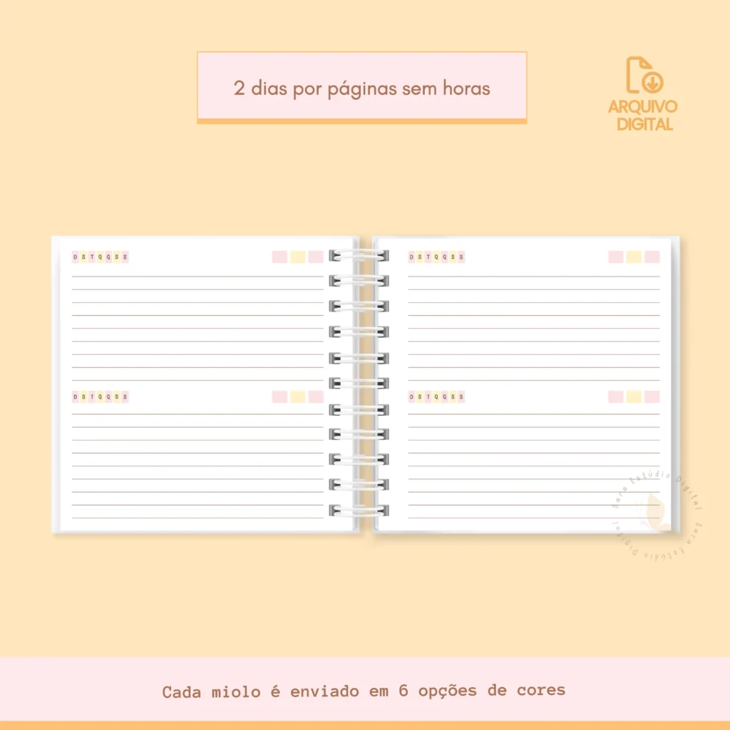 Miolo Agenda não datada Mini quadrada (2 em 1) – 6 cores