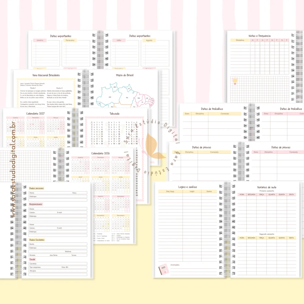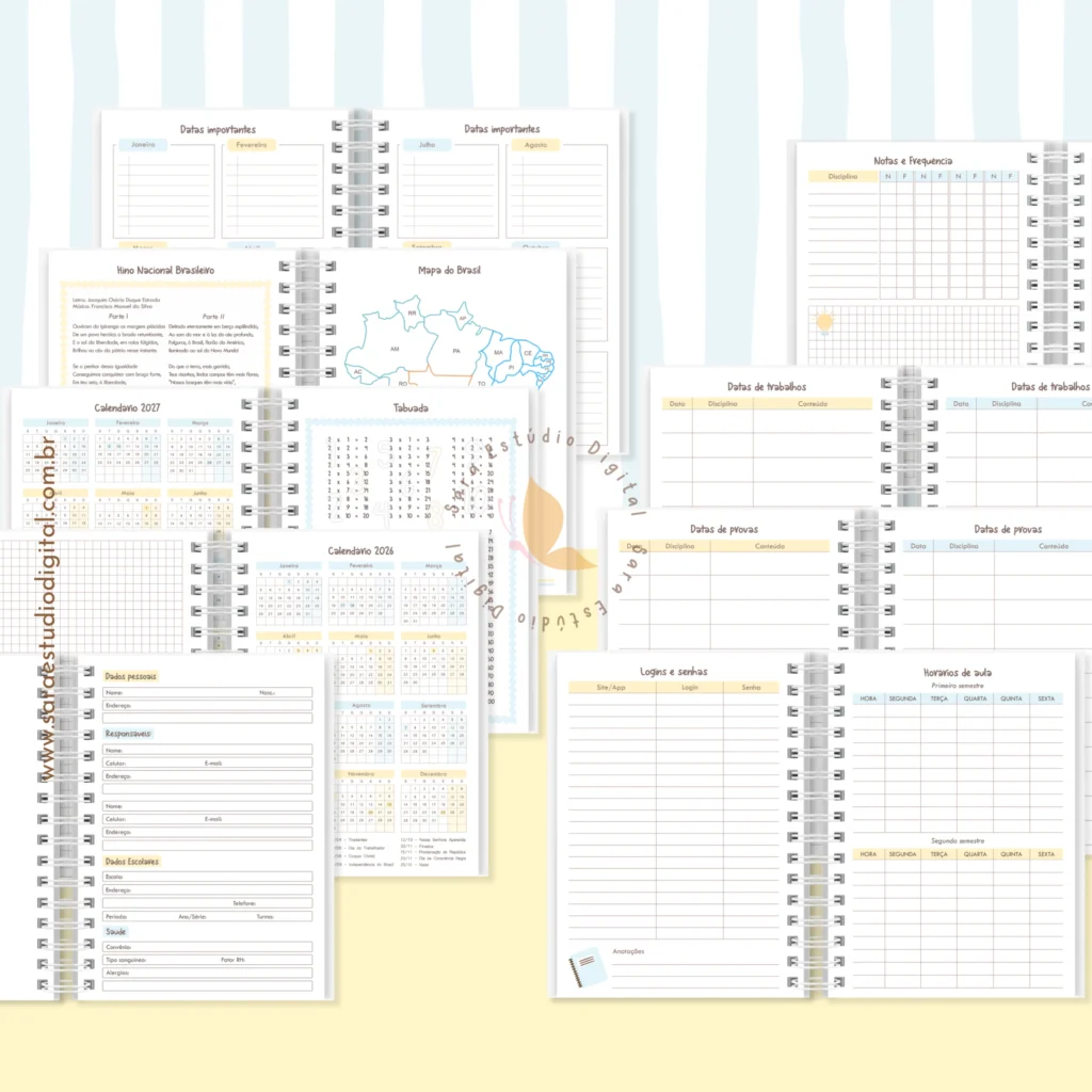 Miolo de Agenda Escolar não datada A5 – 2 em 1 (Sara Estúdio)