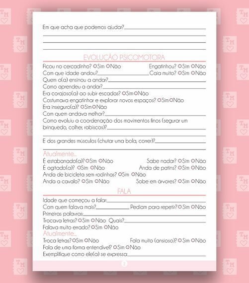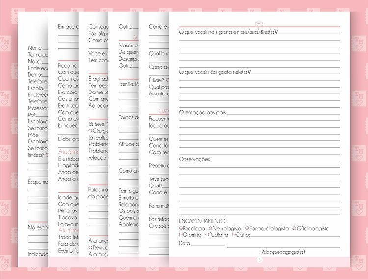 Ficha de Anamnese em PDF. Tamanho A4. 6 páginas.