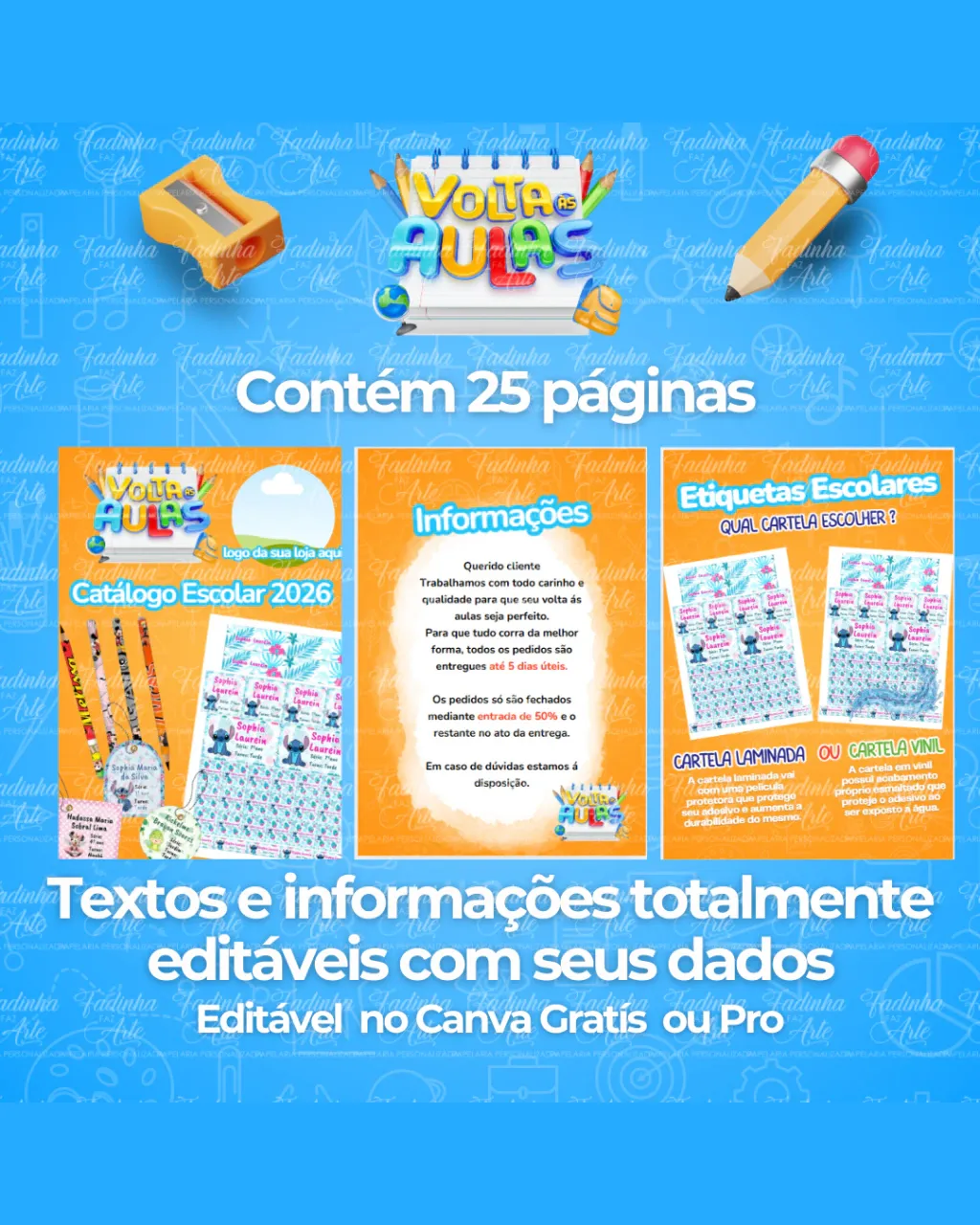 📚✨ Molde Catálogo Volta às Aulas – Fadinha Faz Arte