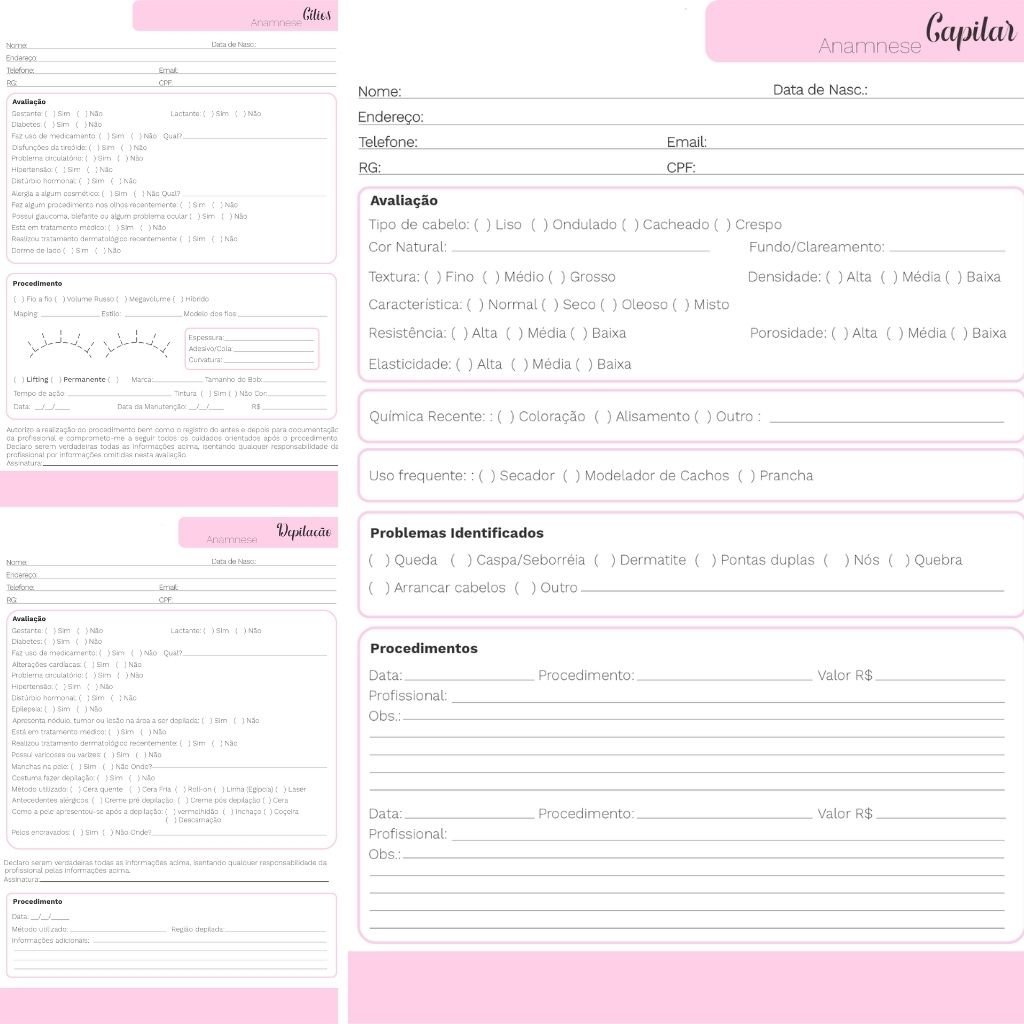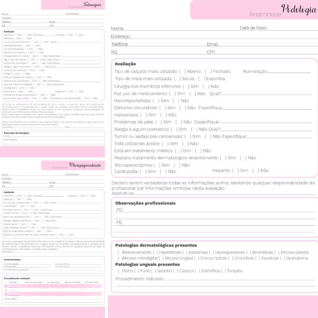 Pack Fichas Anamnese Profissões