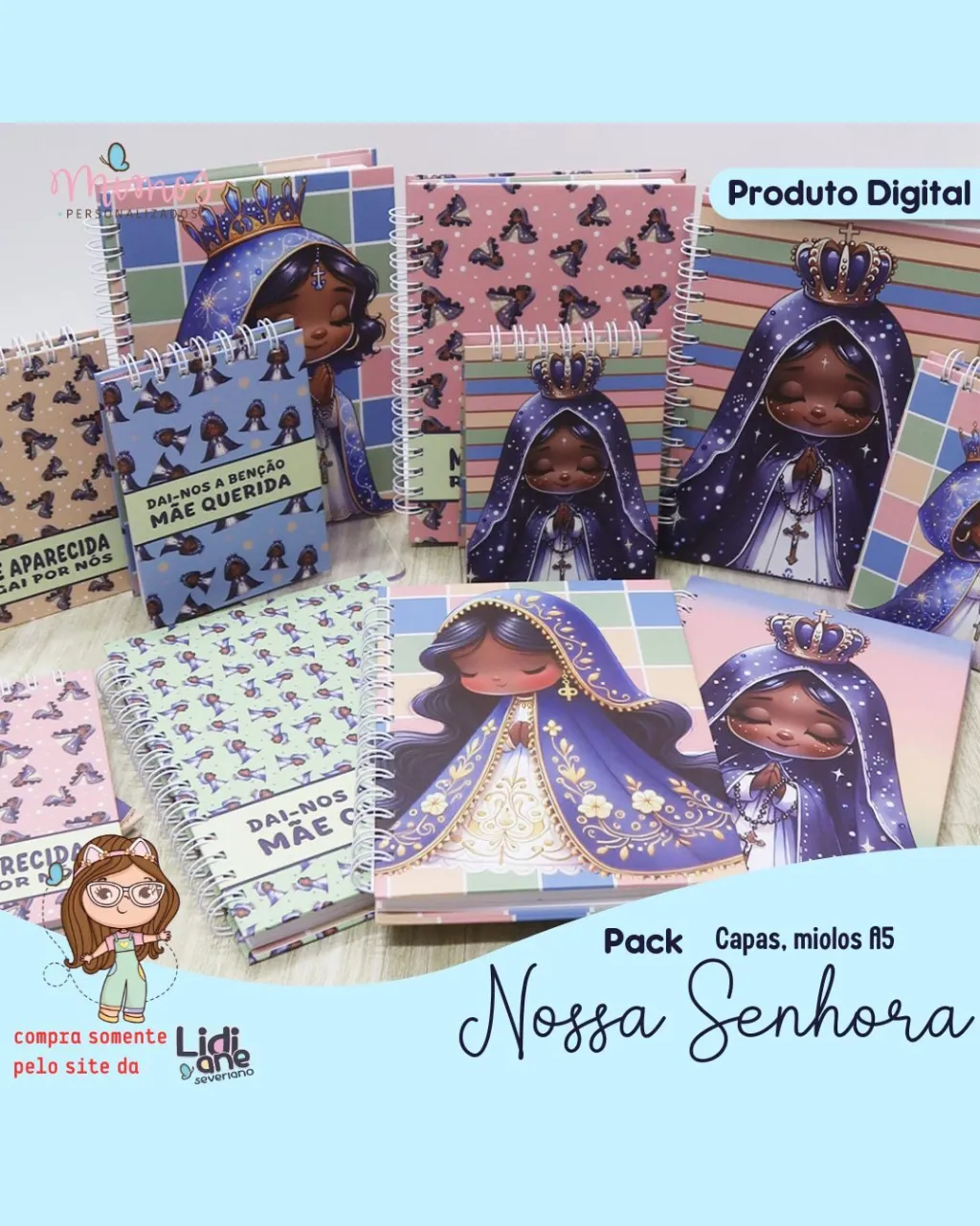 👉 O Pack Nossa Senhora – Lidiane é a escolha perfeita para quem deseja criar produtos personalizados com identidade espiritual e visual encantadora, agregando valor e diferencial ao seu trabalho.