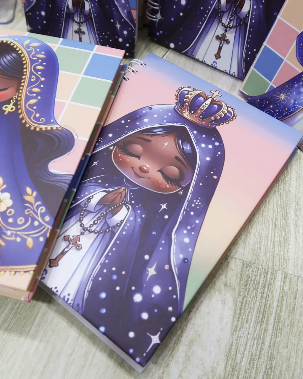 - Exclusividade: artes inspiradas em Nossa Senhora, trazendo significado e beleza aos seus produtos.