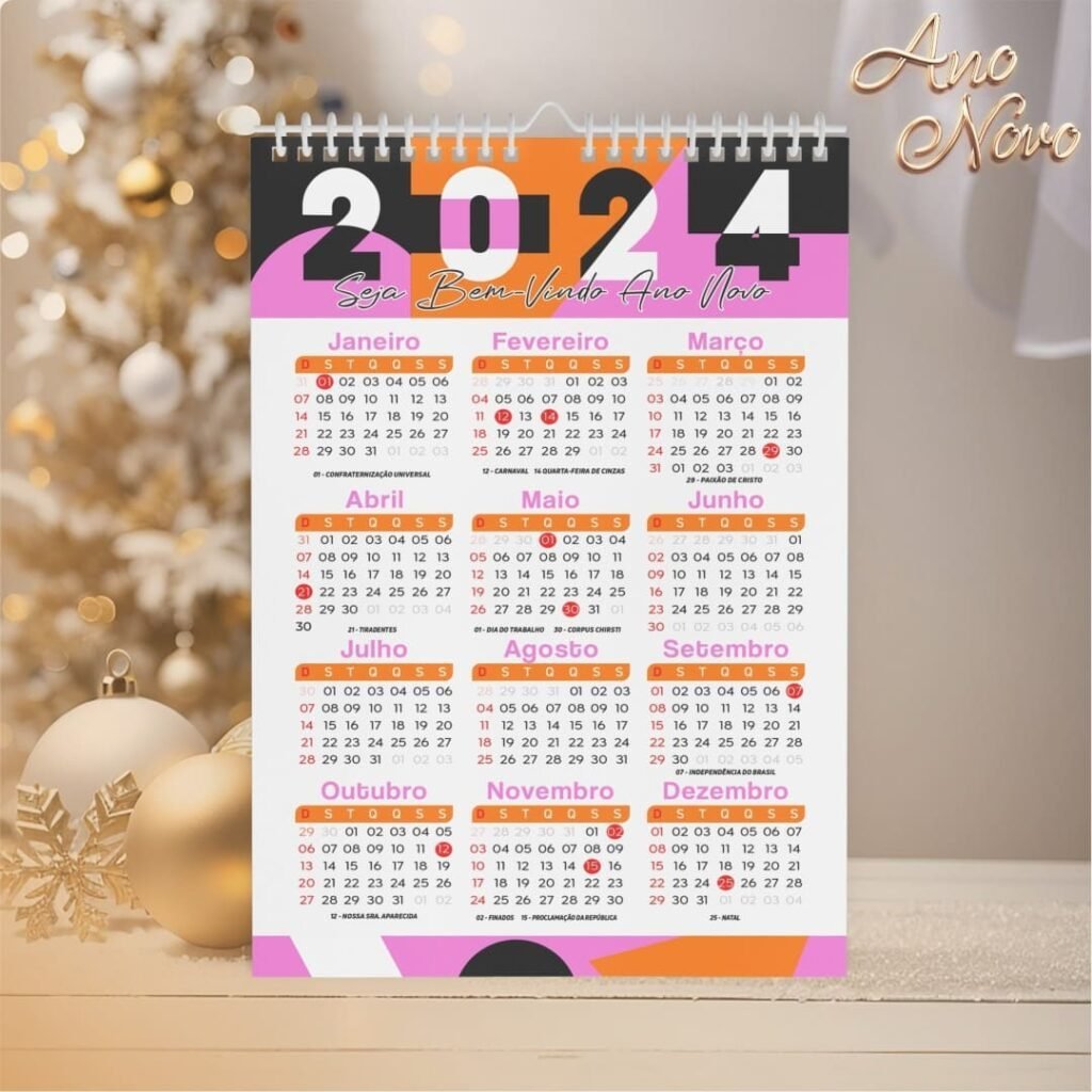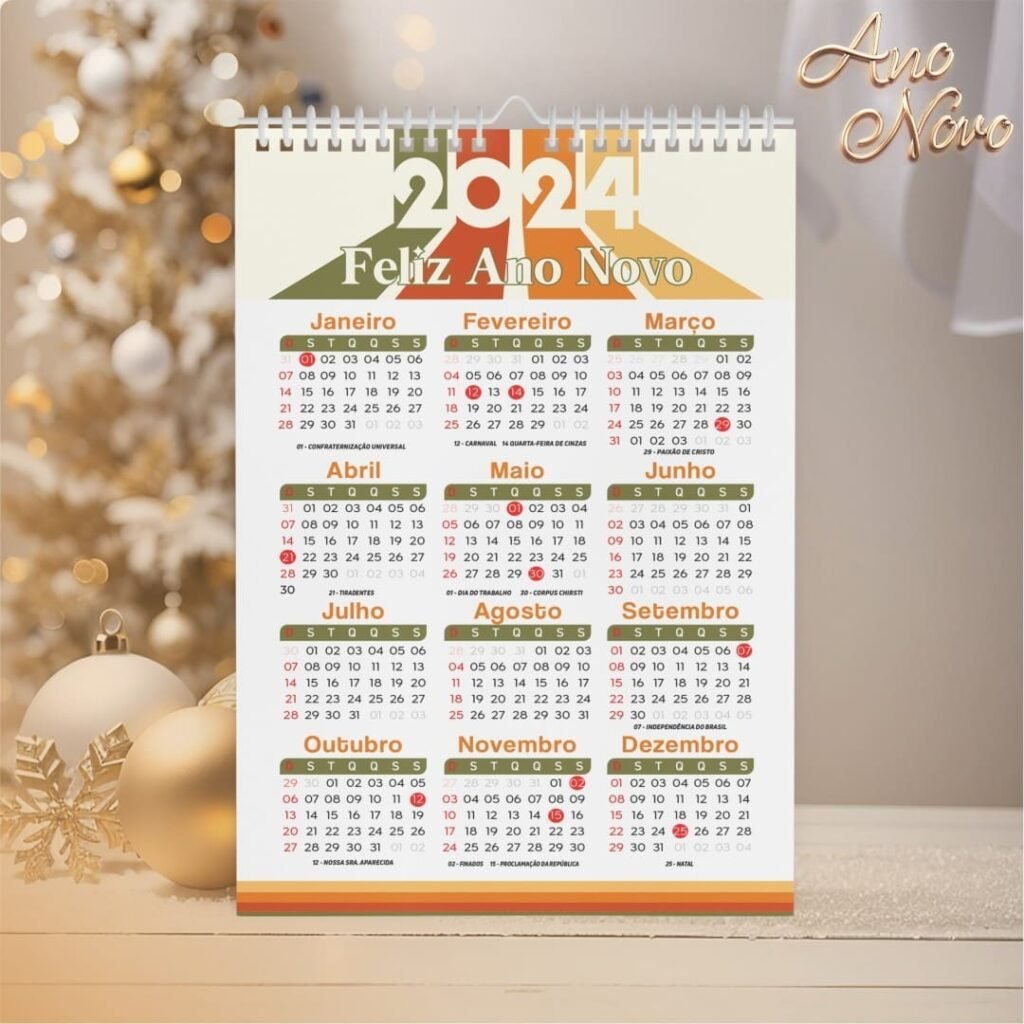 Pacote de Artes Calendários A4 – Ano Novo 2024 V23 (Vintage)