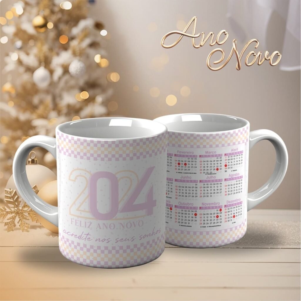 Pacote de Artes Canecas Personalizadas – Ano Novo 2024 V23 (Vintage)