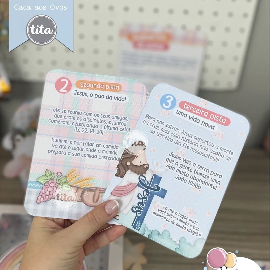 – Cards com as pistas do Caça aos Ovos
