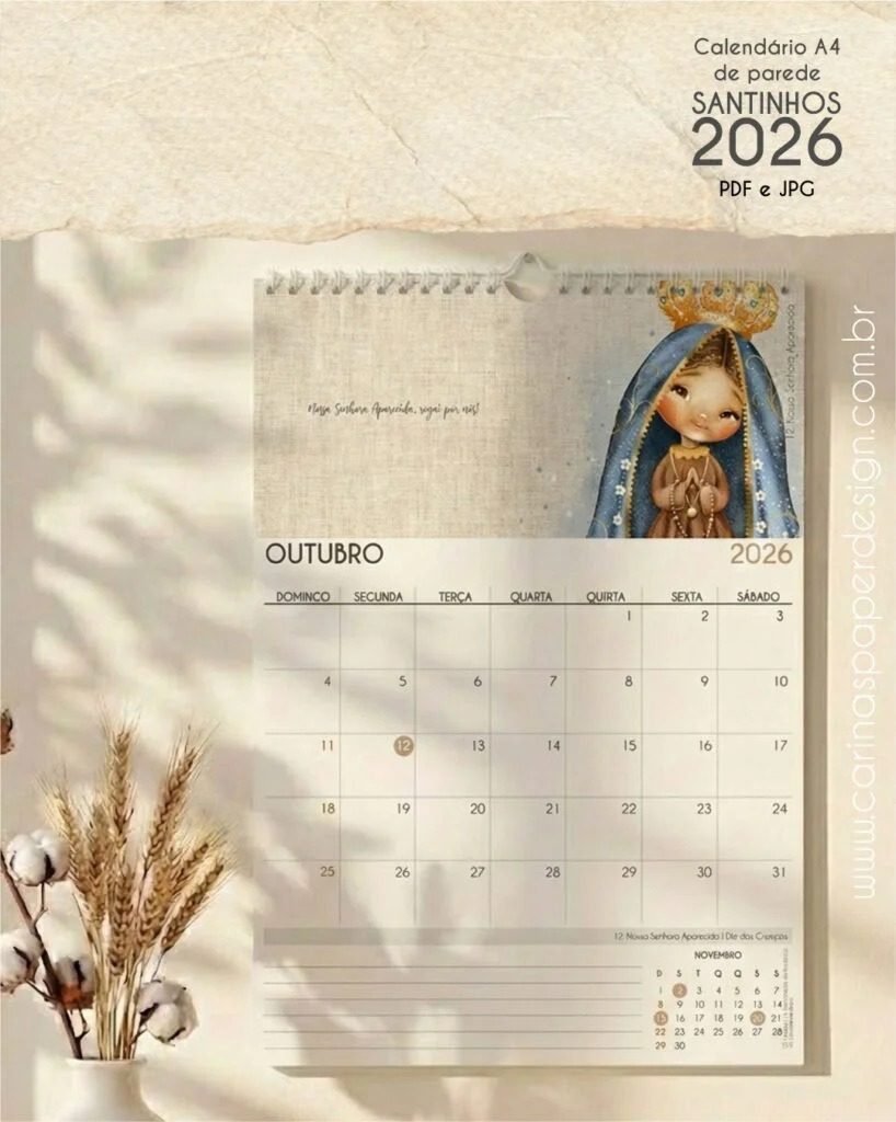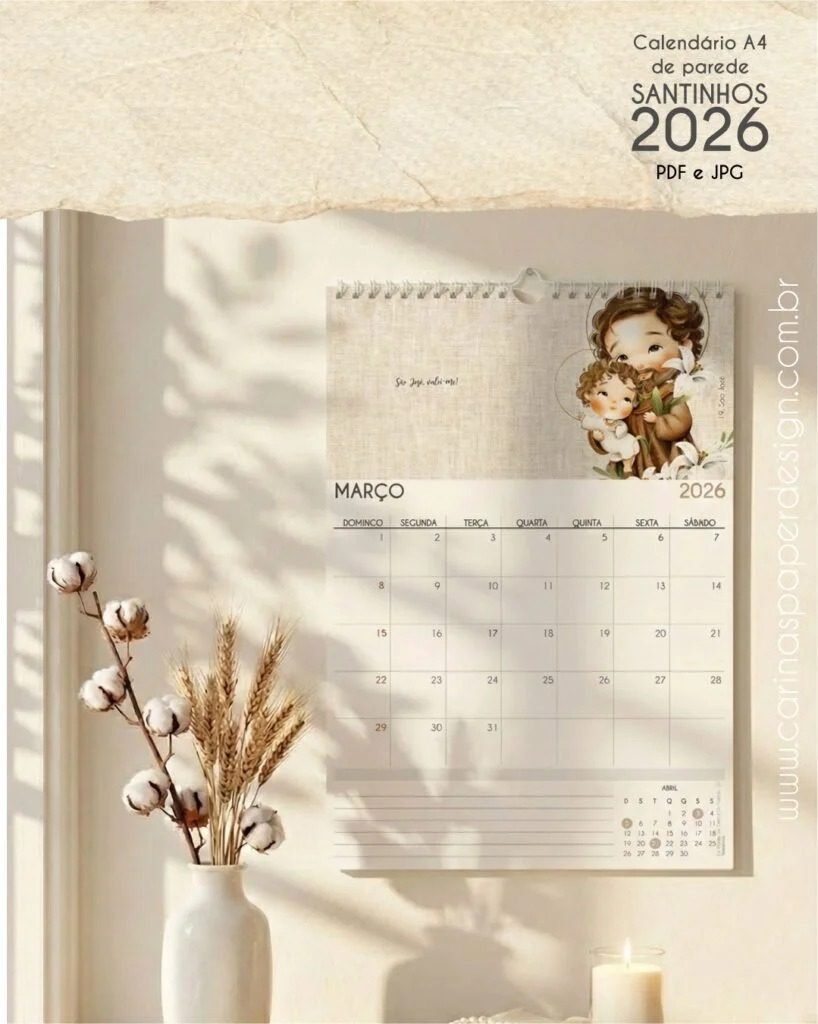 📅✨ PDF Calendário de Parede Santinhos A4 – Carinas Paper