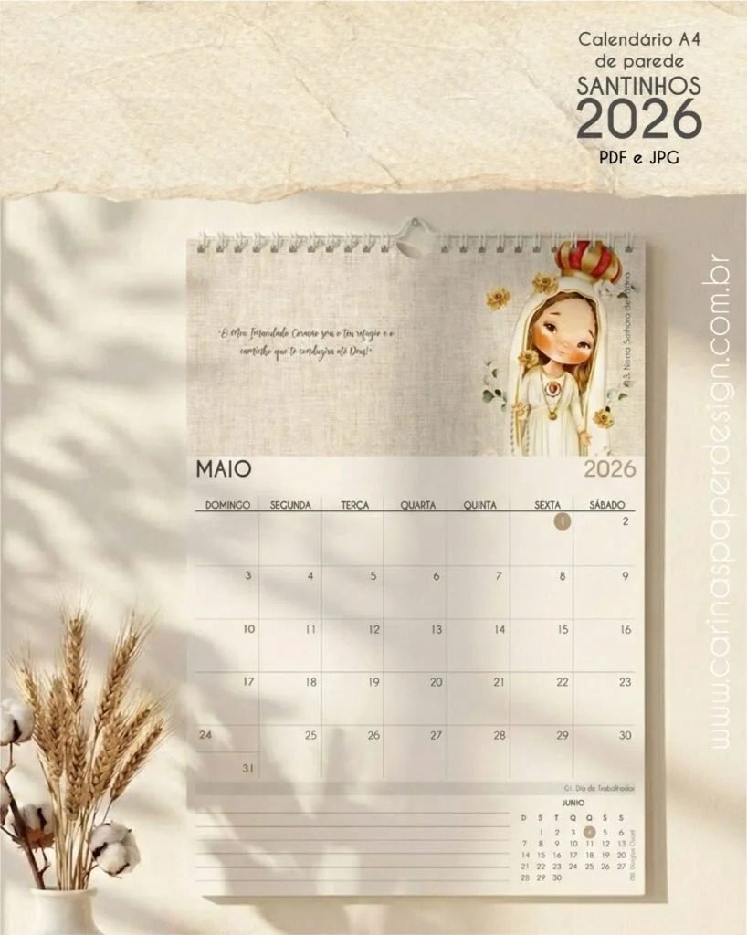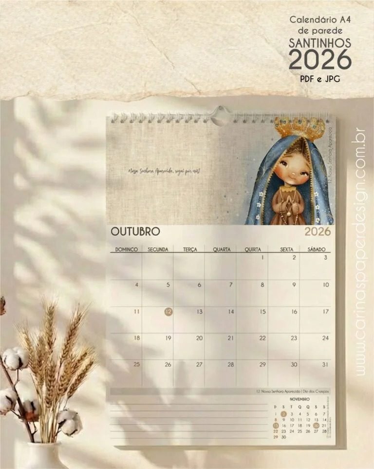 👉 O PDF Calendário de Parede Santinhos A4 – Carinas Paper é perfeito para quem deseja unir fé, organização e criatividade em um produto simples e encantador.