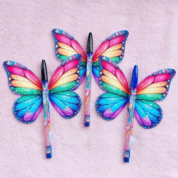 n1 PDF não editável, no PDF vão 2 páginas, na página 1 vai o adesivo para a caneta (13 na folha) e na página 2 vai o card de borboleta (3 na folha).