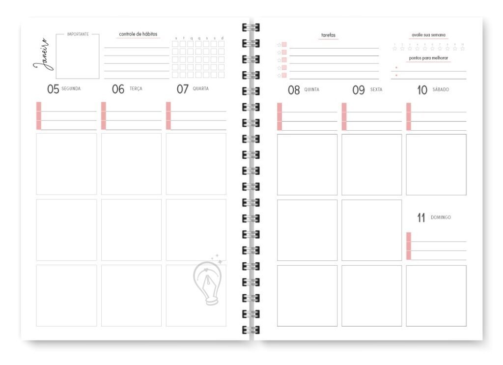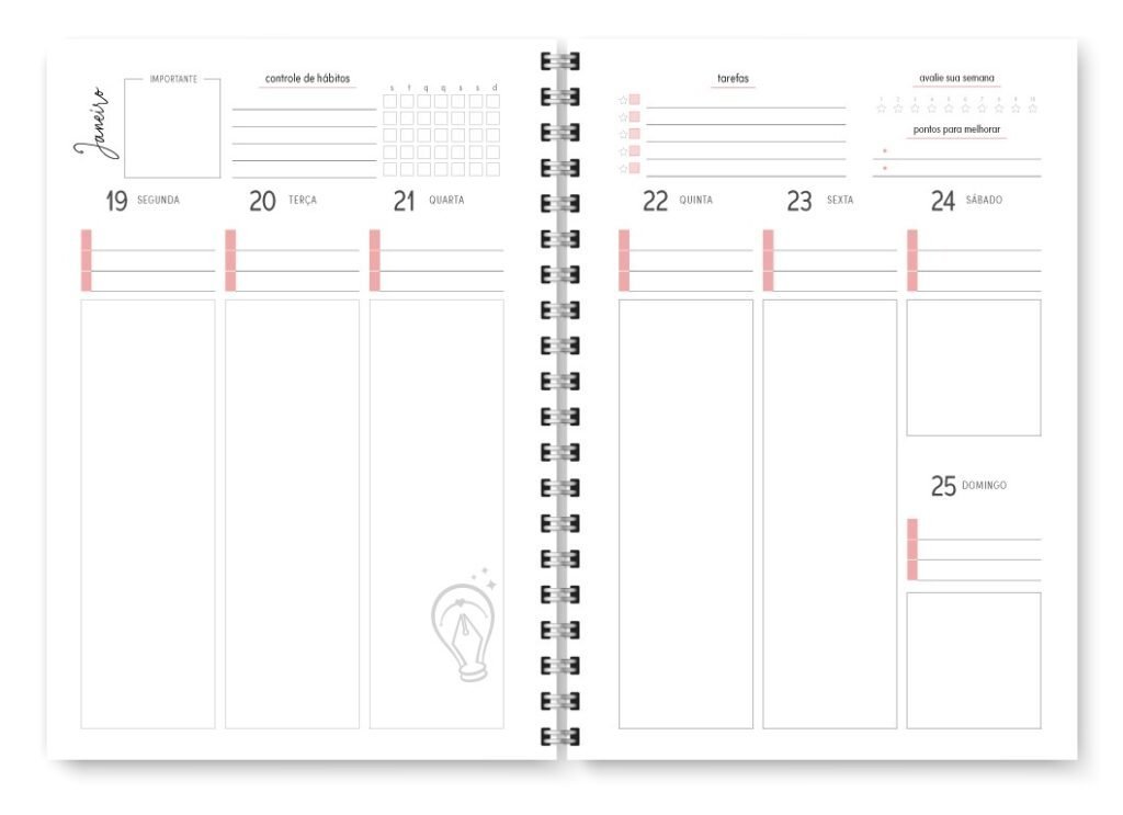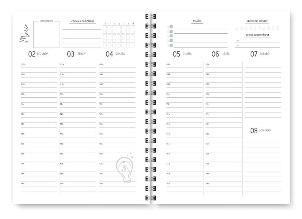 - Visão semanal em duas página / Horizontal