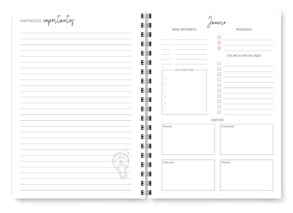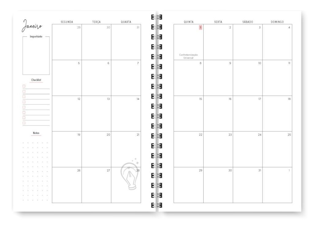- Visão mensal em duas páginas
