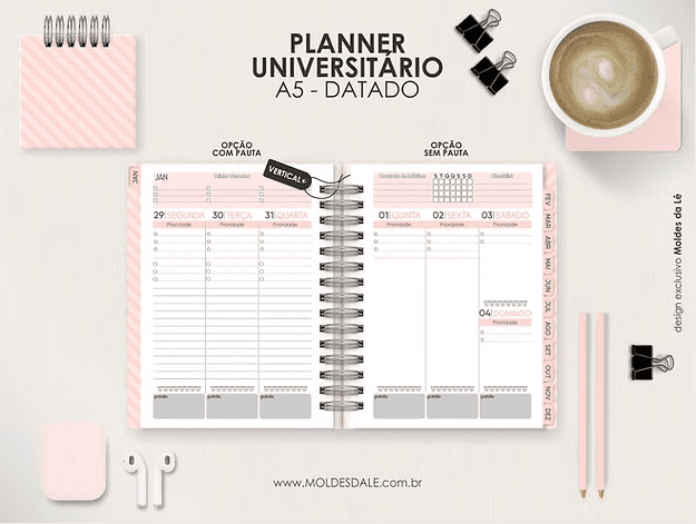 Planner Datado Vertical 2026 (Moldes da Lê)