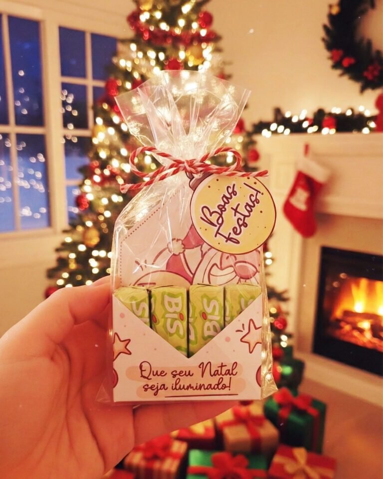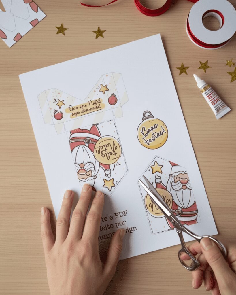 Este produto é um arquivo digital em PDF, criado no estilo exclusivo Lunna Design, trazendo um porta-BIS natalino ilustrado com Papai Noel, estrelinhas e mensagens carinhosas como “Que seu Natal seja iluminado!” e “Boas Festas!”.