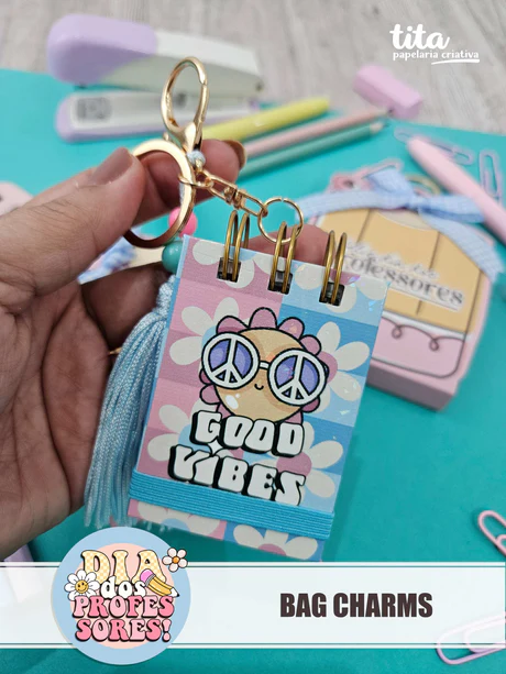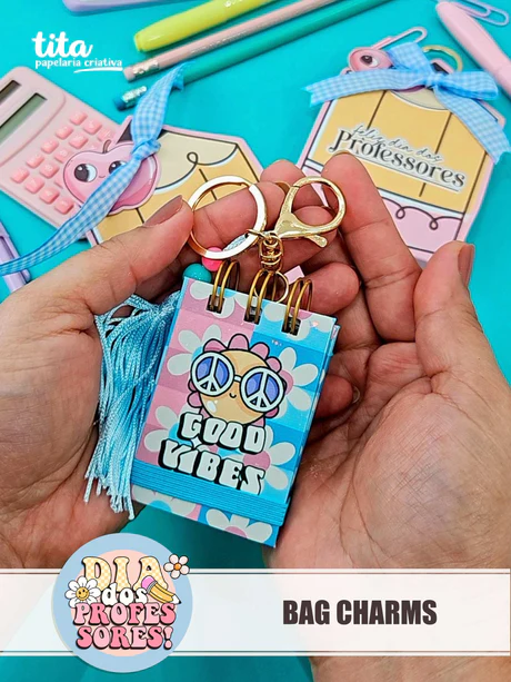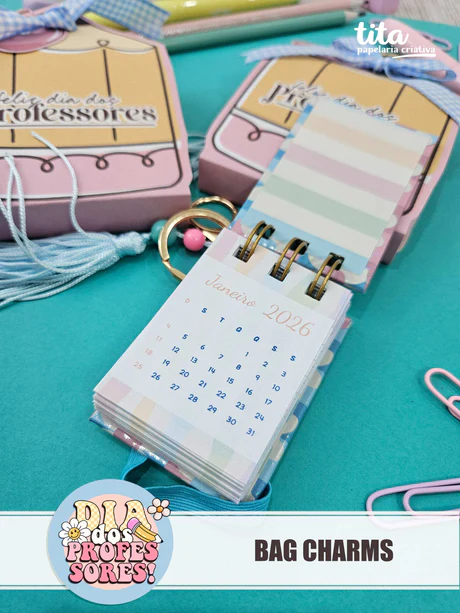 - Bag Charms – Chaveirinho com miolo de calendário e pauta