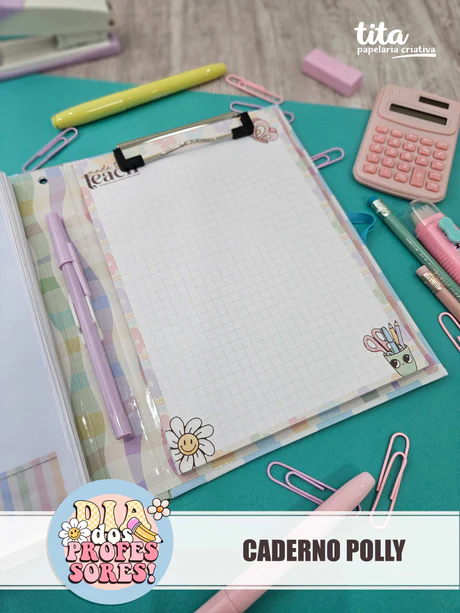 - Caderno Polly – Com miolo de caderno de aula e bloco + várias capas + VIDEO AULA