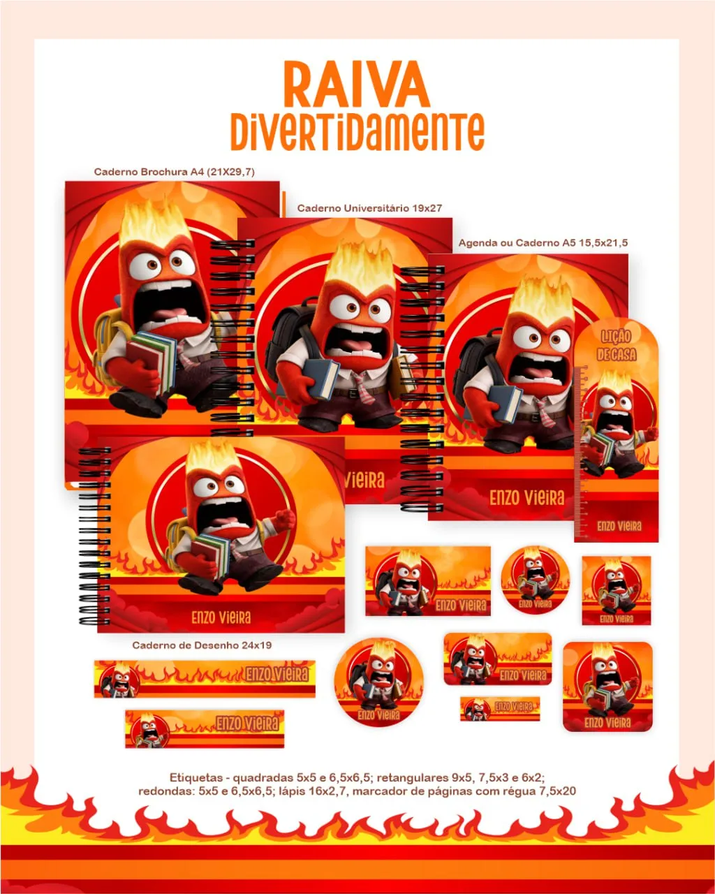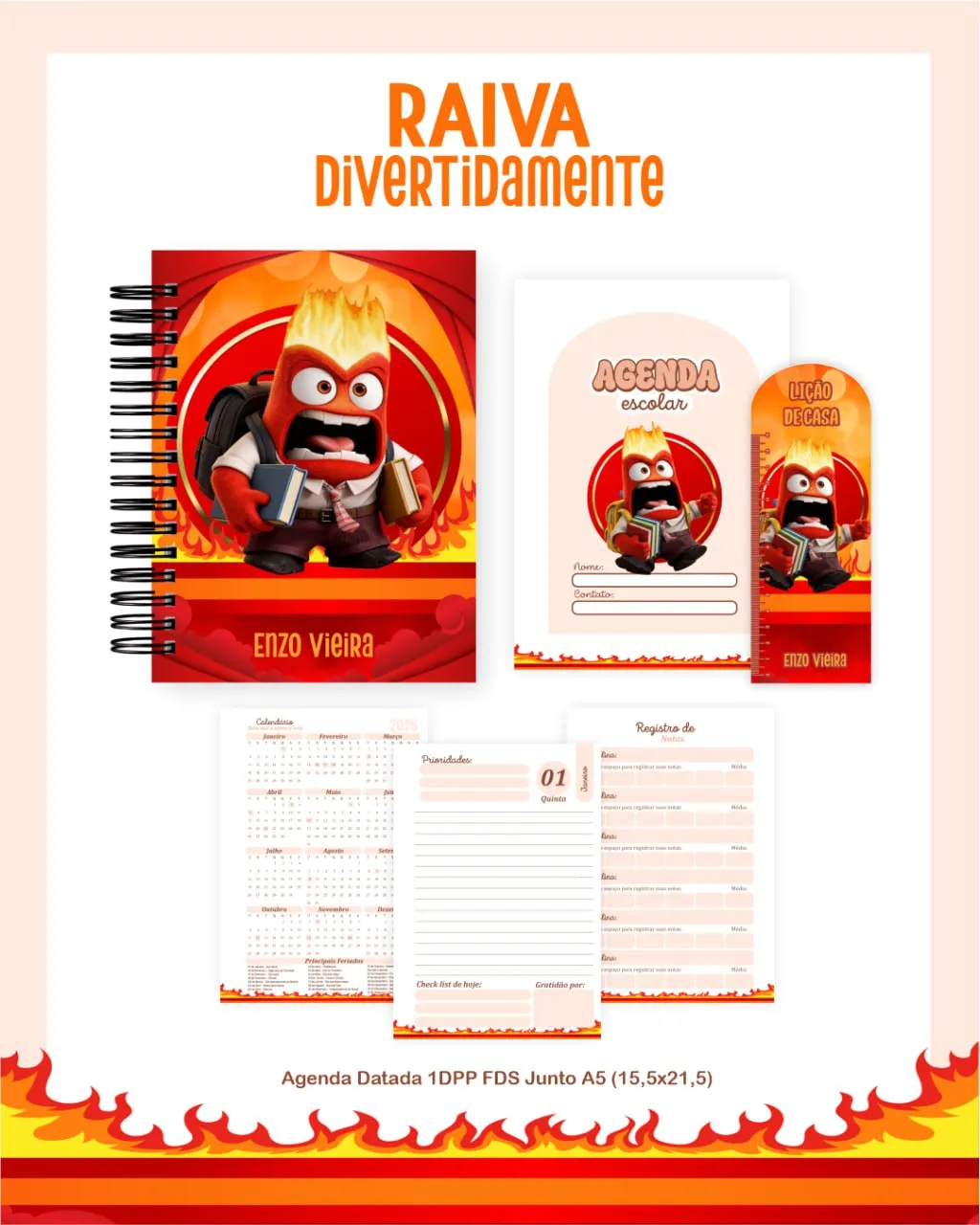 Comece o ano letivo com intensidade e personalidade! O Raiva – Volta às Aulas 2026, criado por Pamela Vieira, é inspirado no personagem Raiva da animação Divertidamente, trazendo toda a energia e autenticidade dessa emoção para o seu dia a dia escolar.