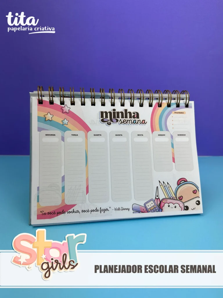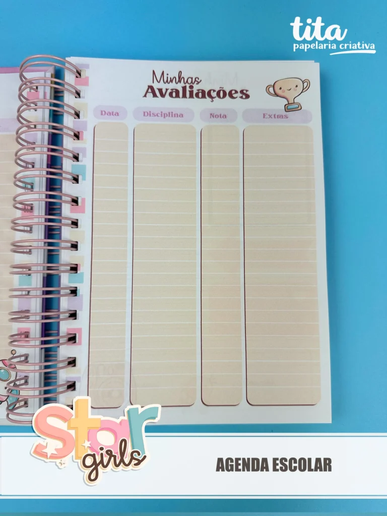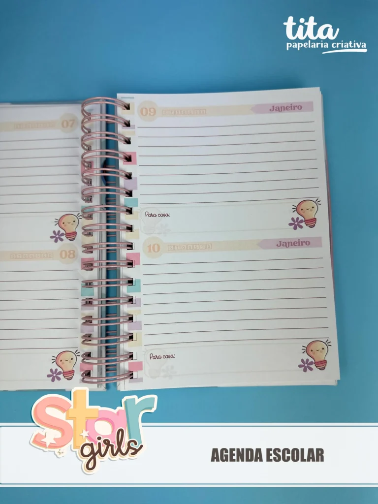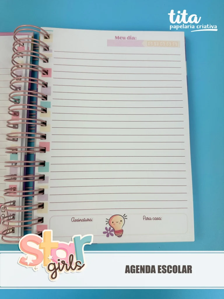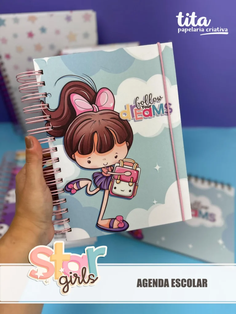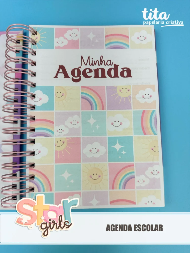 - Agenda Escolar A5 – Miolo personalizado, bolsinhos, 2 cartelas de adesivos e várias capas. >>Miolo com e sem divisão de meses (com dias da semana) e nas versões 1 dia e 2 dias por folha.