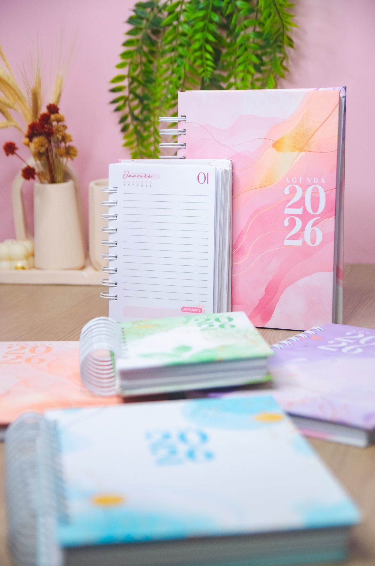 Combo Mini Agendinhas A6 – 28 miolos nas 7 cores da coleção, datados e permanentes, 1DPP e 2DPP.