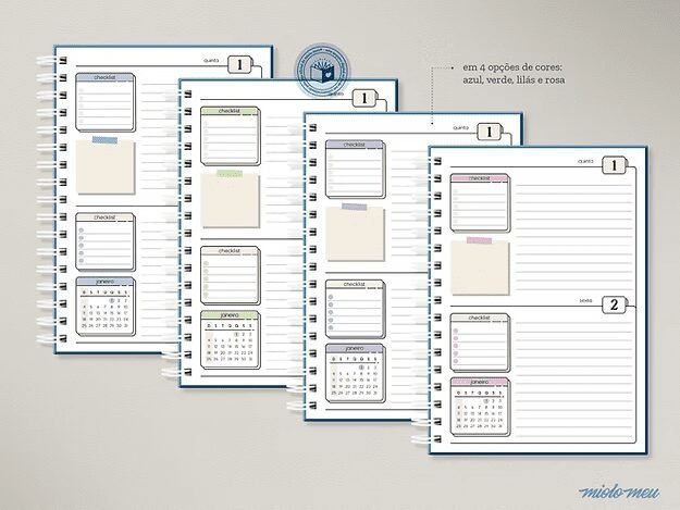 - Em 4 cores: azul + bege, verde + bege, lilás + bege e rosa + bege;