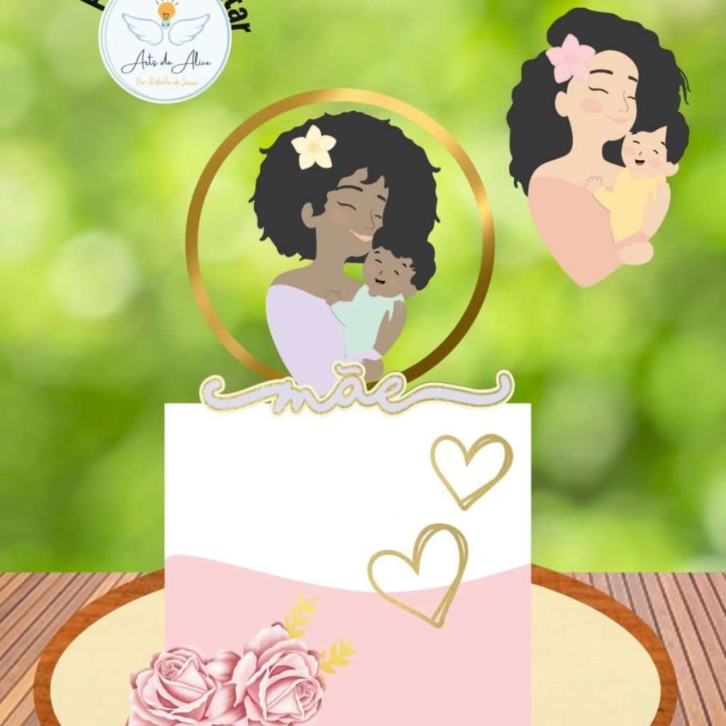 16 Arquivos para Topos de Bolo Dia das Mães em Studio Editáveis