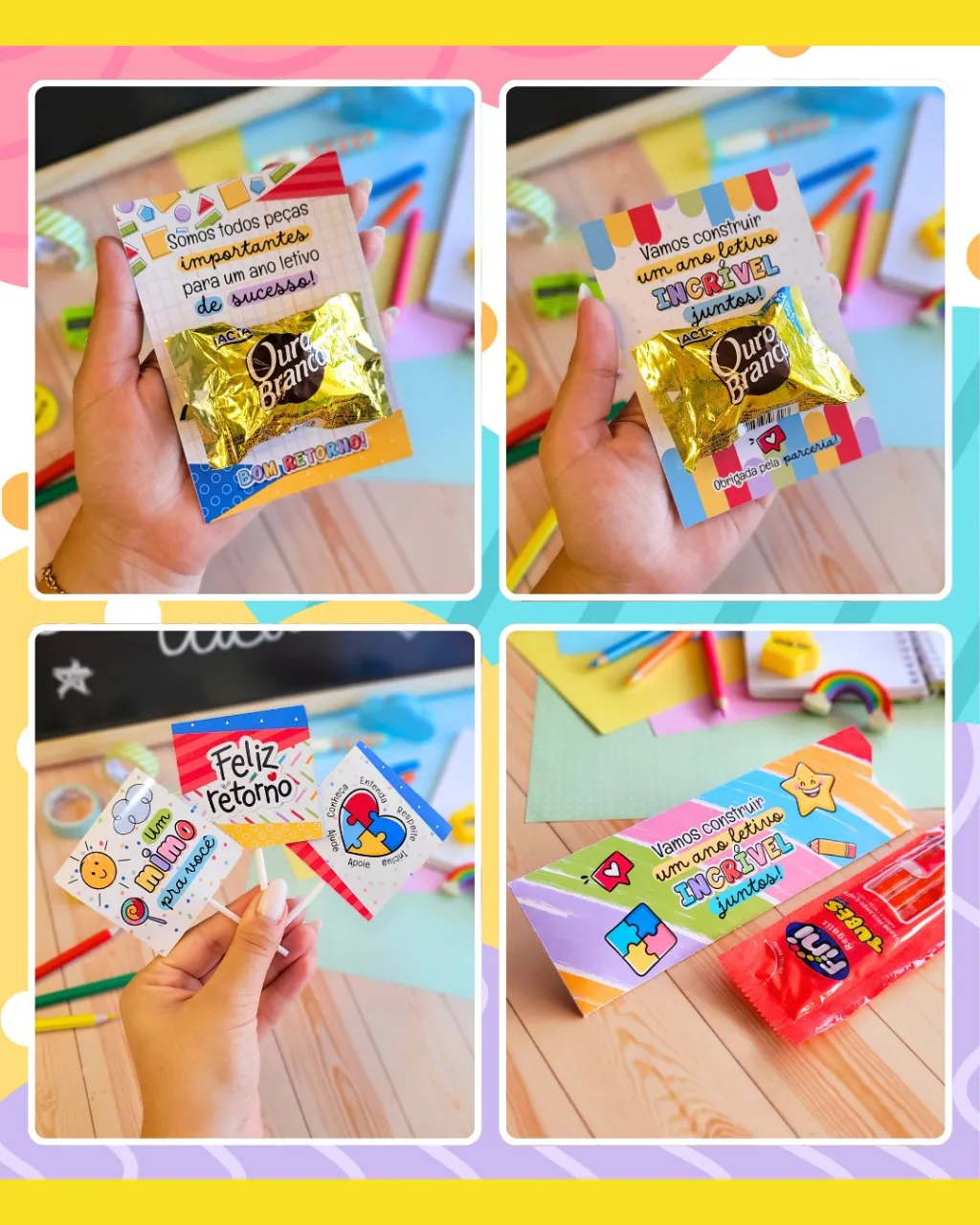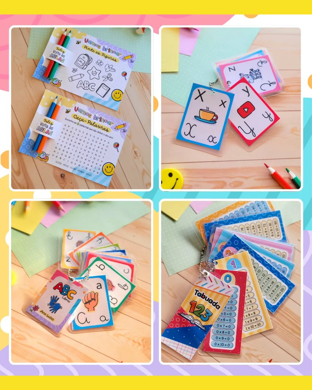 - Variedade: materiais educativos e lembrancinhas em um só kit